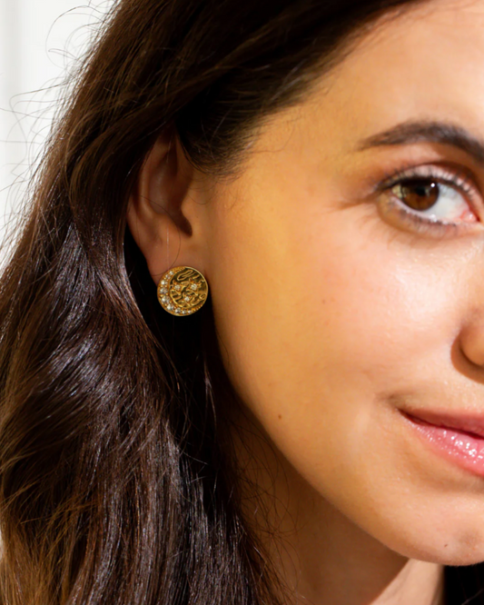 أقراط متدلية بتصميم جيود بلون البشرة الفاتح