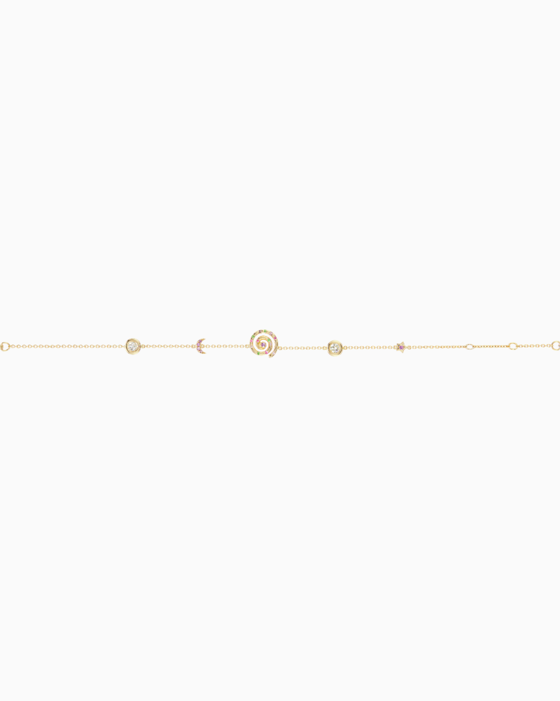 تجسد مارماري أسرار الكون في سوارٍ ساحر مستوحى من الأجرام السماوية، مزين بمجموعة متألقة من الأحجار الكريمة. صُمم هذا السوار ليكمل إطلالة متعددة الطبقات، ويتميز بمزيج متناغم من الأحجار البراقة، يضفي كل منها لمسة من التألق الكوني.