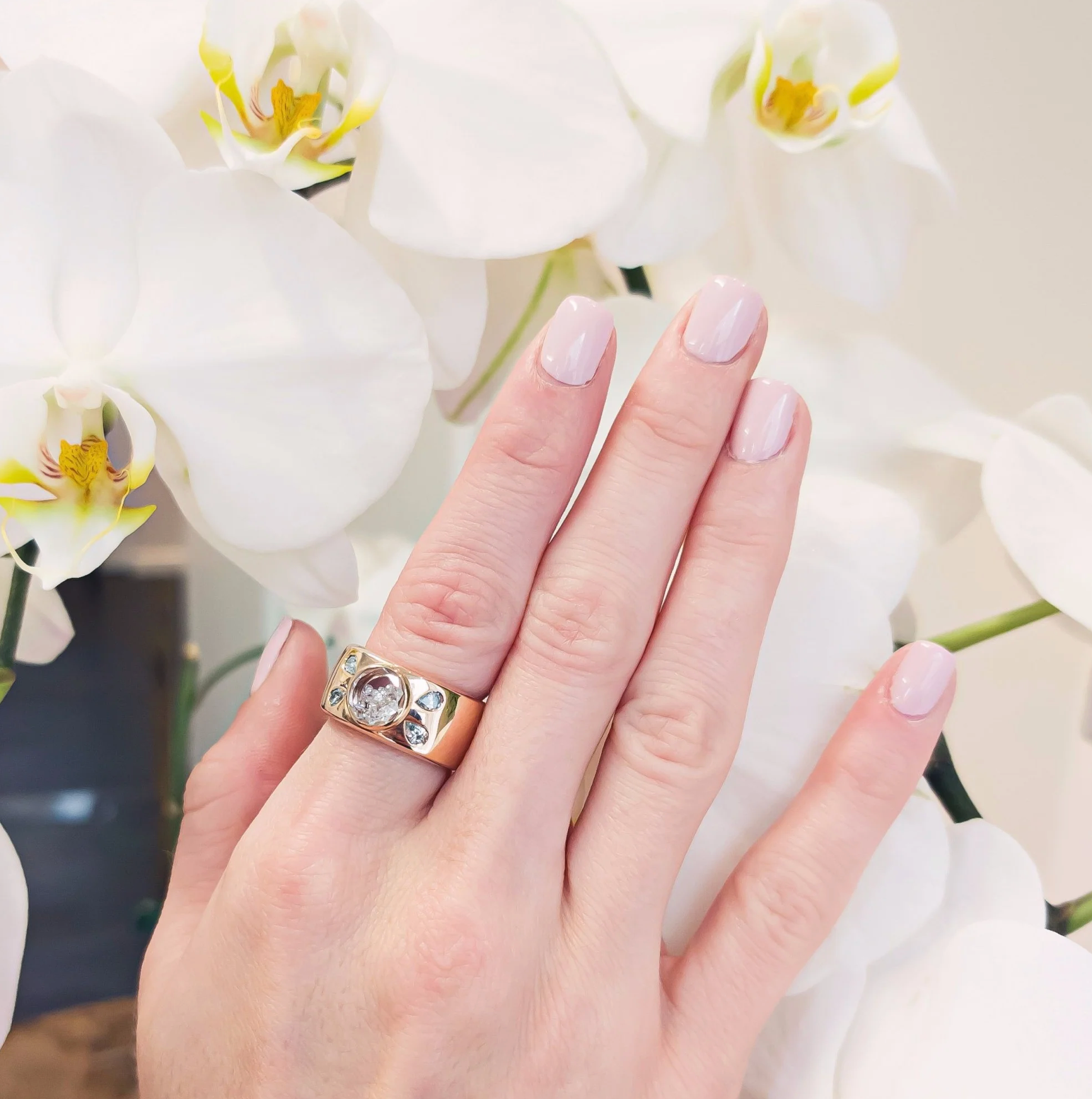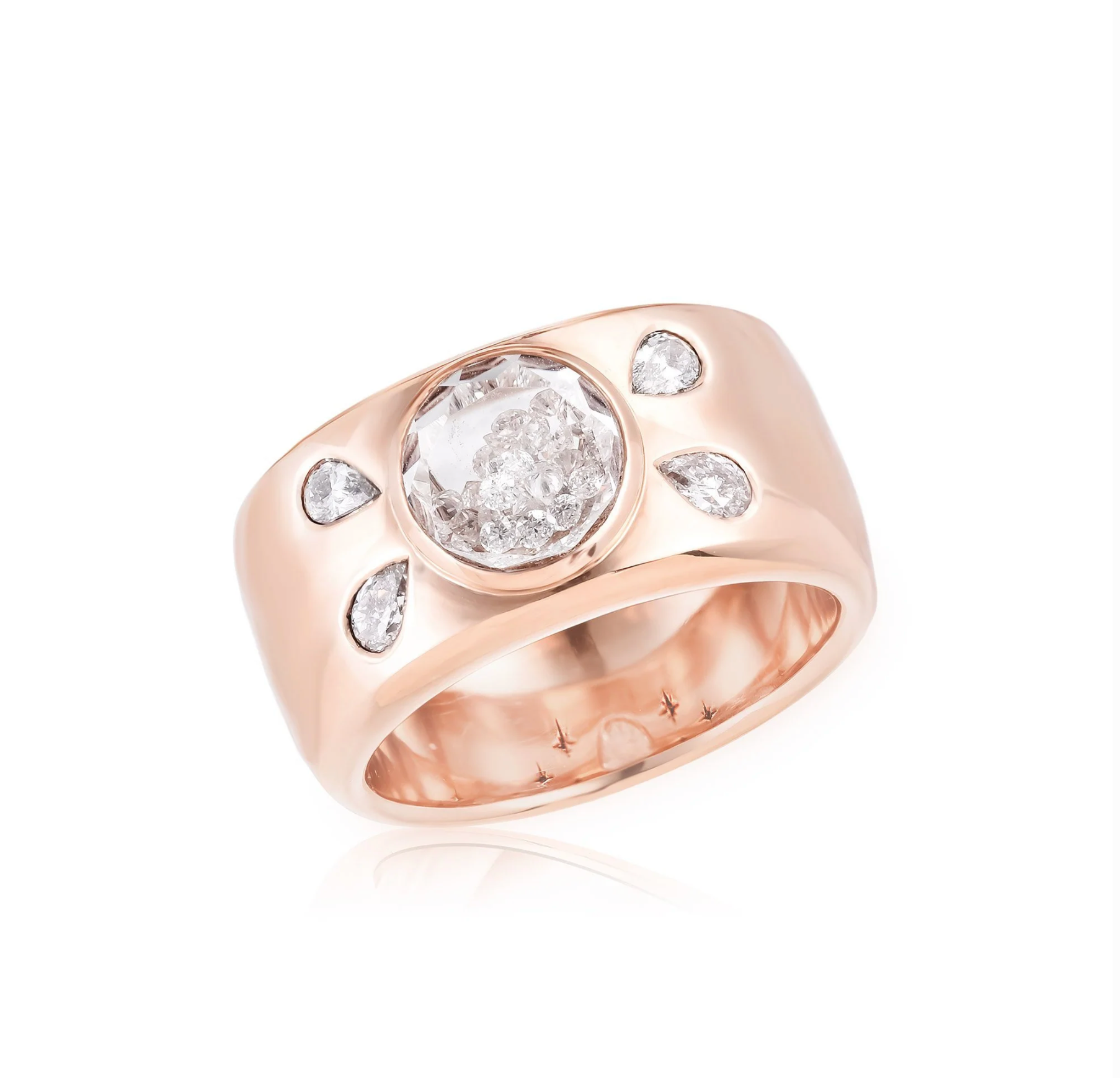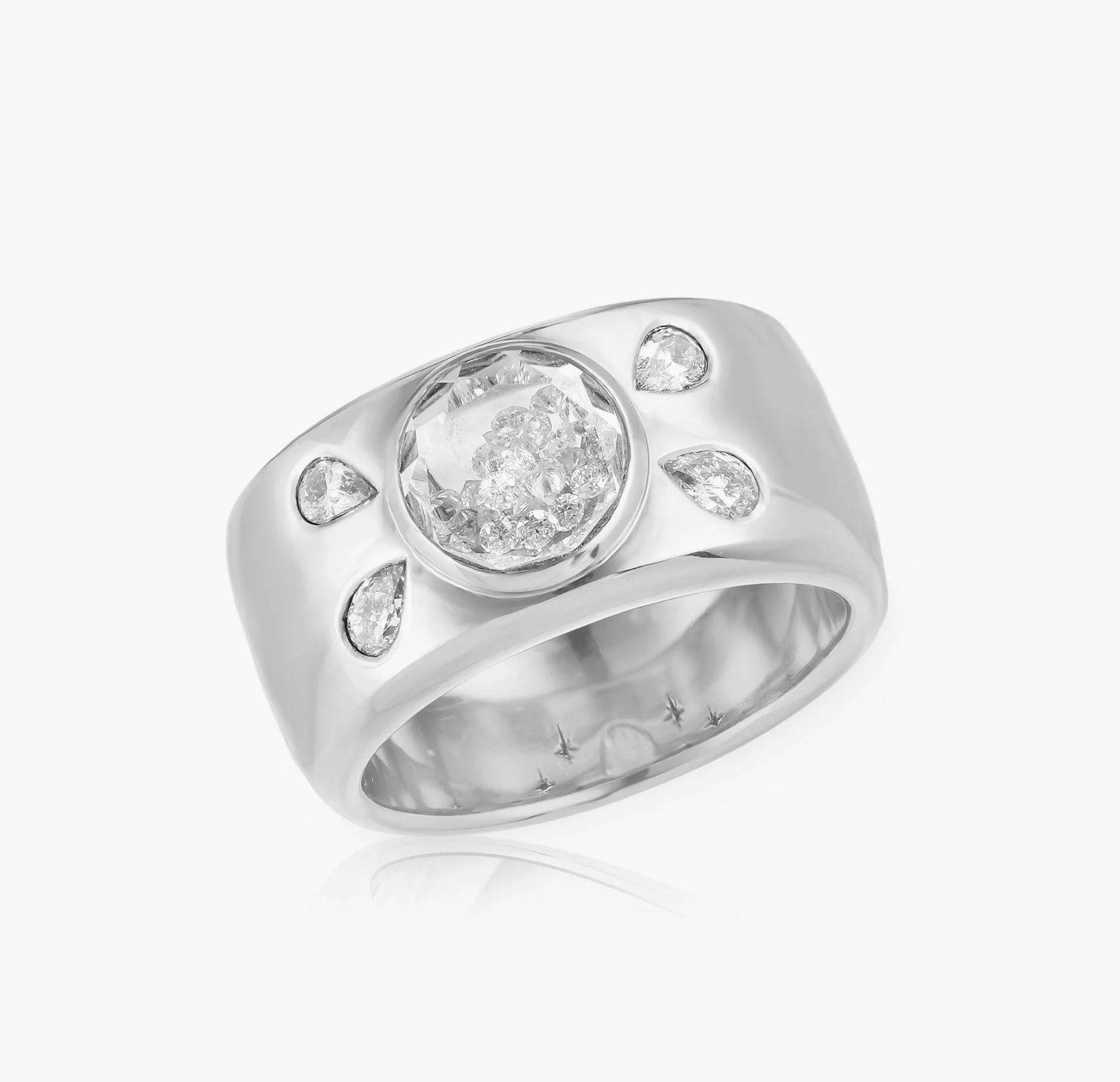 Ring with 0.79ct of diamonds set in and enclosed in a white sapphire Kaleidoscope Shaker™ in 18k gold