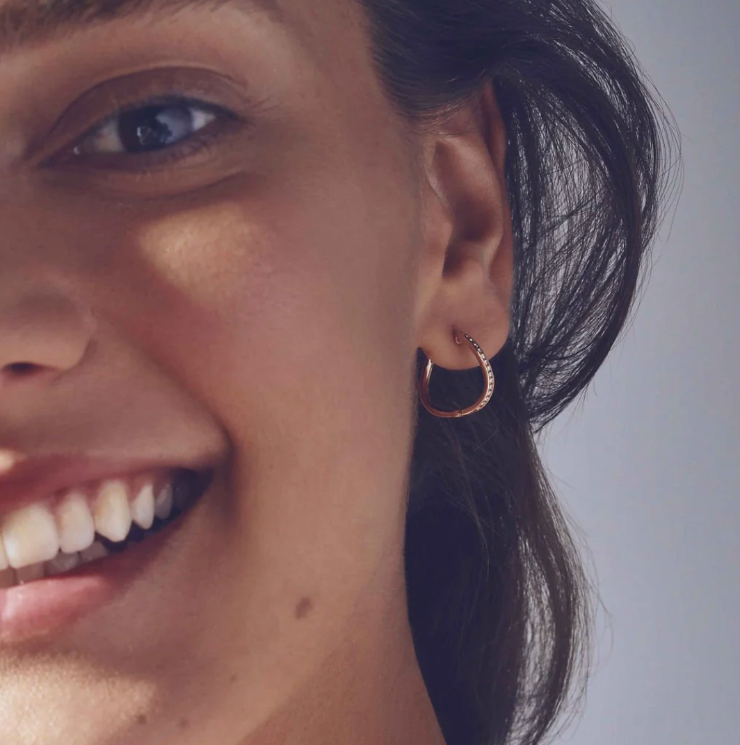 These Infinity Earrings are made out of 18k Gold and set in white diamonds, and has a diameter of 1.5cm.