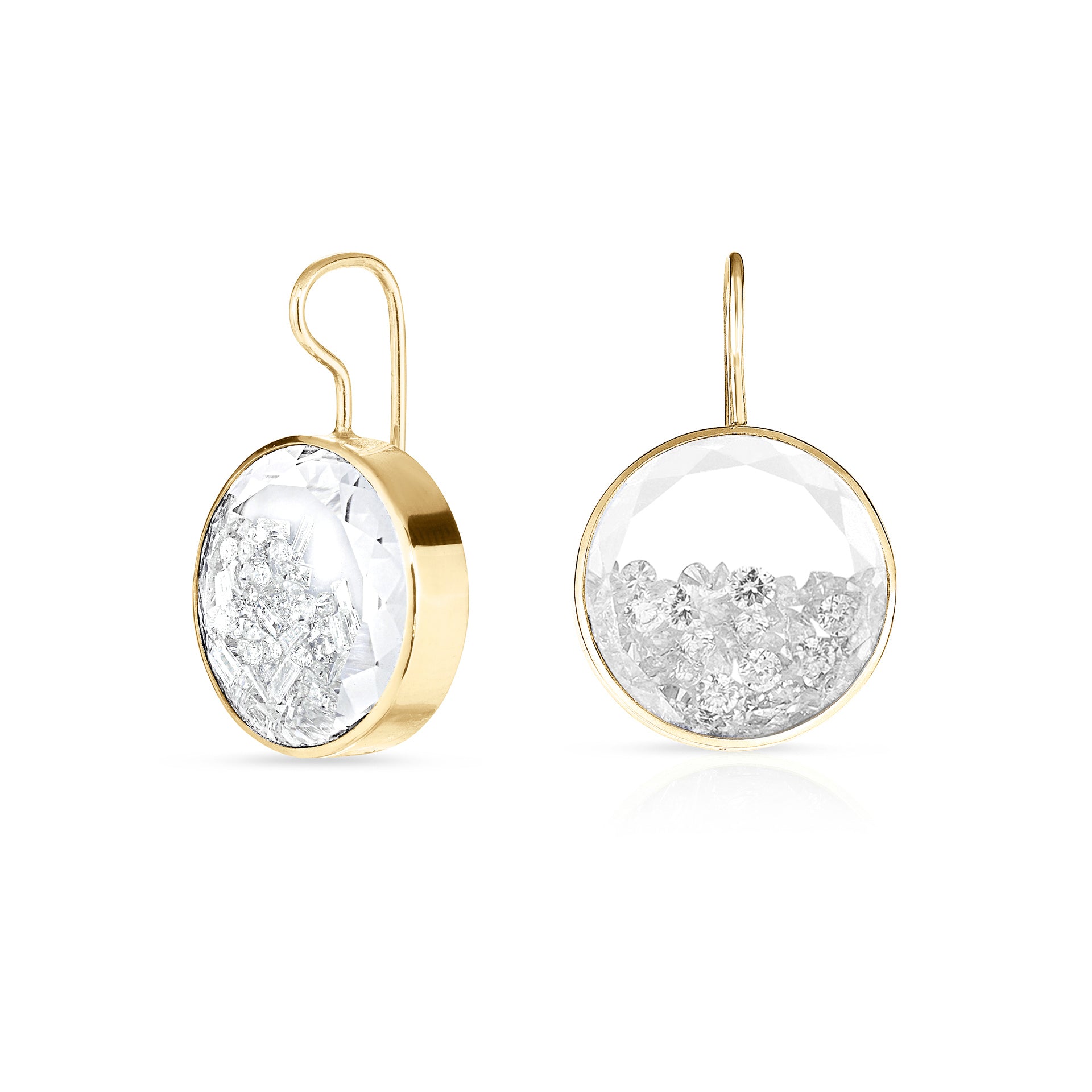 15mm Round Earrings with 2.90ct of diamonds enclosed in white sapphire Kaleidoscope shakers in 18k gold