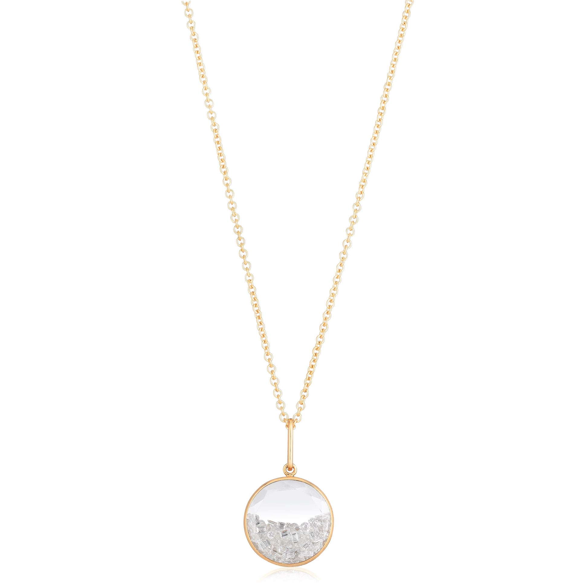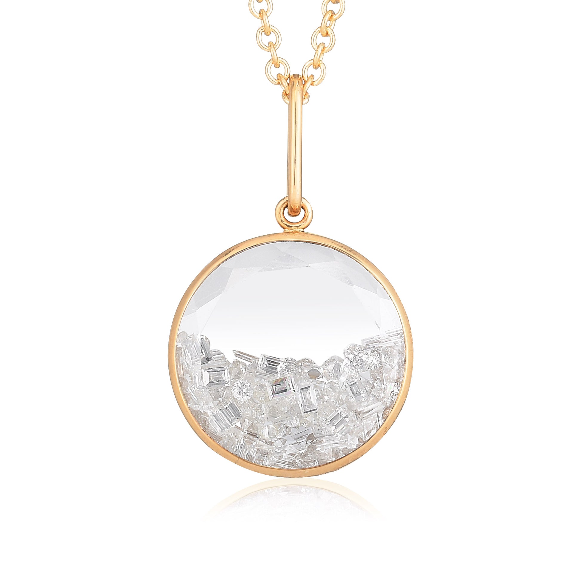 15mm Round Pendant with 1.50ct of diamonds enclosed in a white sapphire Kaleidoscope shaker in 18k gold