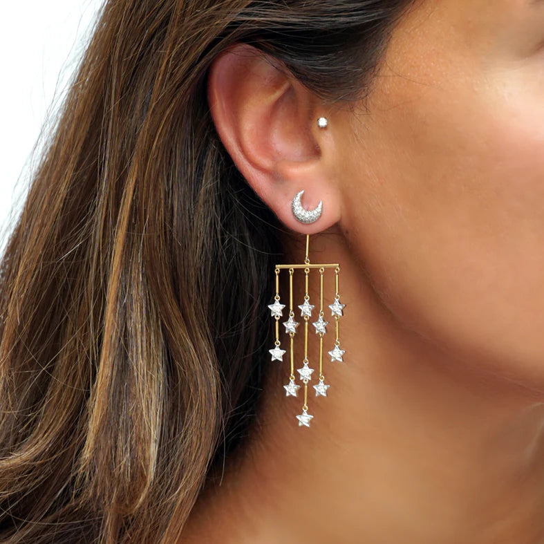 Can be hooked on any stud earrings from the back or front of the lobe.