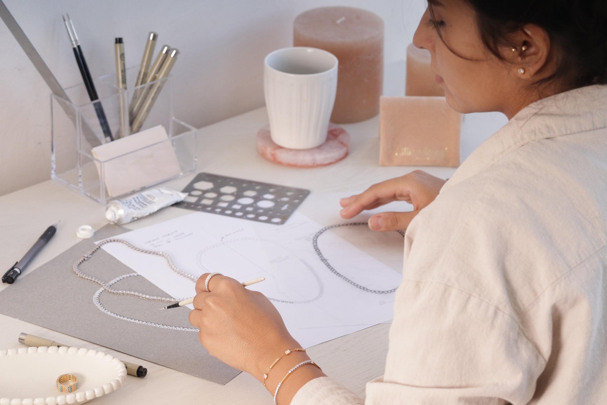 This intensive workshop is perfect for beginners in jewelry design, guiding you through the entire creative process from generating visual concepts to professionally illustrating your designs on paper.