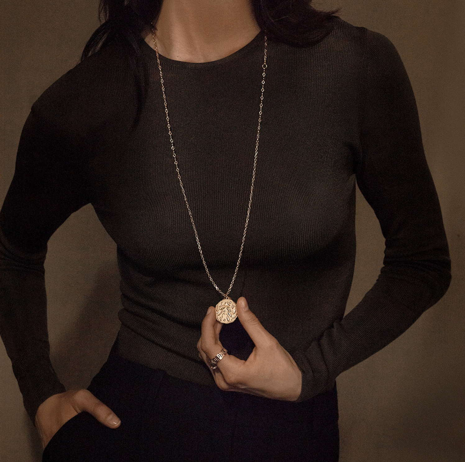 27mm coin; Made of 18K Yellow Gold, .05ct White Diamonds
