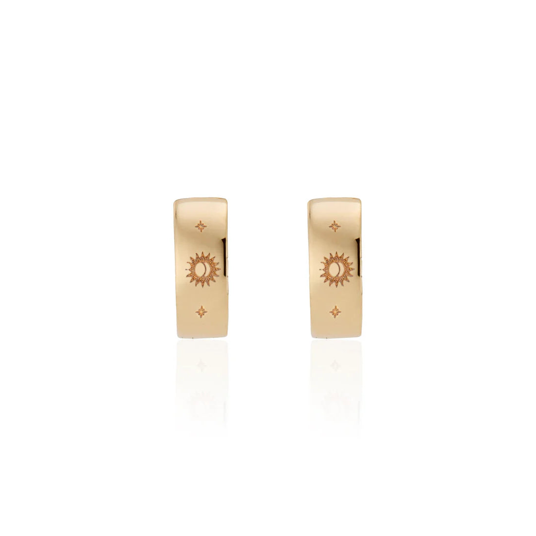 Special Treatments: Reversible Huggies. The reverse of the huggies feature an engraved intertwined Sun and Moon motif.
