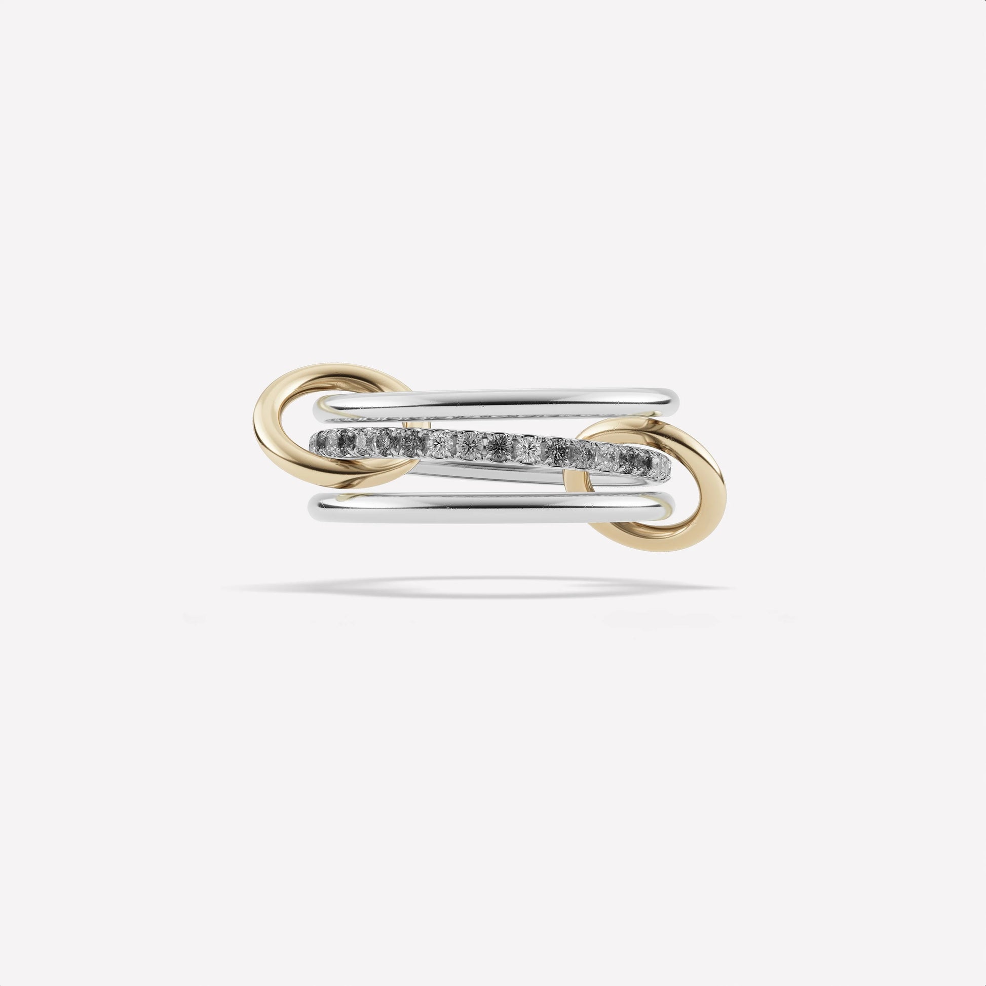 The Sonny ring was forged with simplicity in mind. Its core band of pavé white diamonds is framed by two outer bands of lucent 18k gold, linked by two richly-tonal 18k gold connectors. The Sonny features thin 1.7mm bands, and is perfect for stacking. Ideally suited for everyday wear, the Sonny features a fully-customizable design, with multiple fine metal options including: rose, yellow and white gold, all of 18k purity. Each Sonny is individually handmade in Los Angeles.