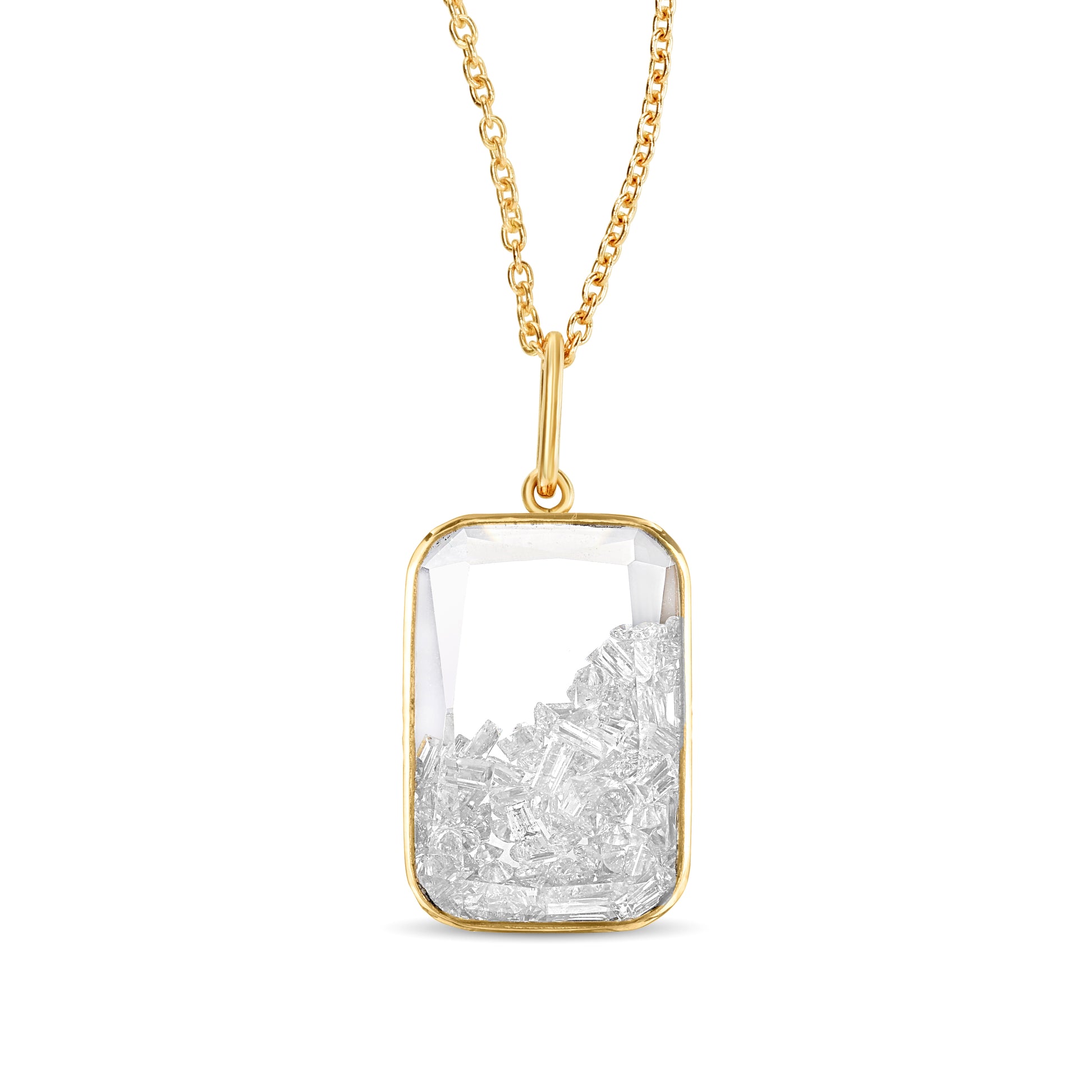 Pendant with 1.40ct of diamonds enclosed in a white sapphire Kaleidoscope shaker in 18k gold
