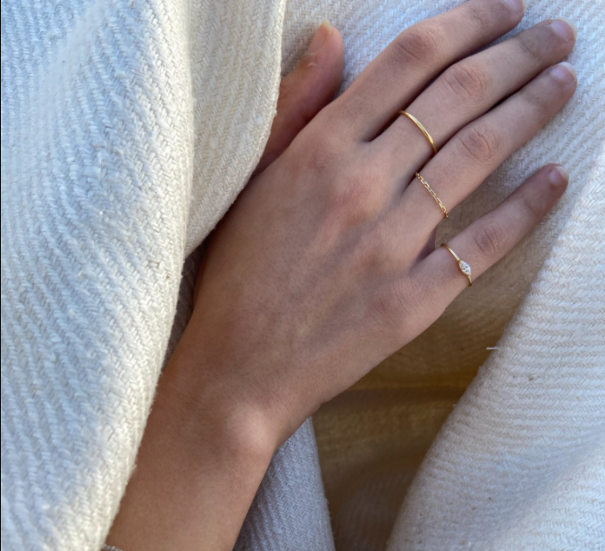 Pictured is the chain ring with the M Simple ring, and the Olivia diamond ring.